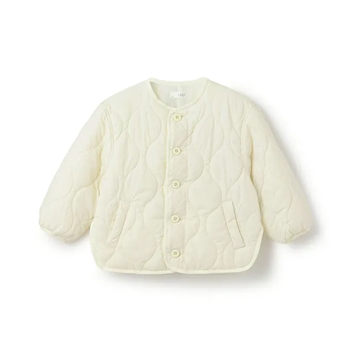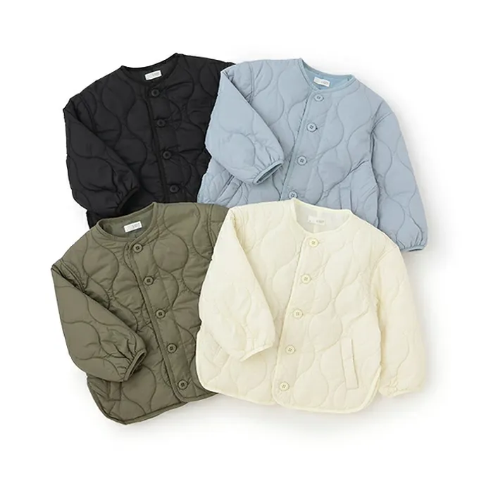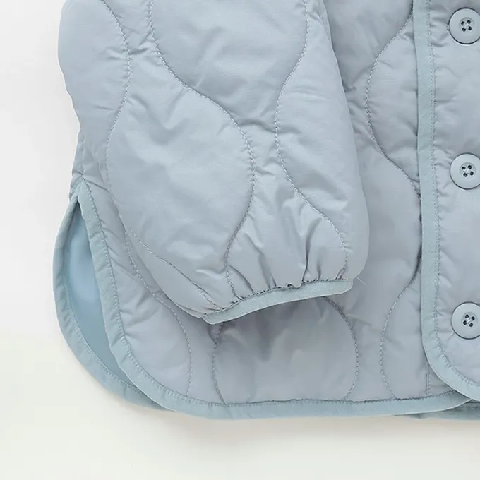 日本 b-ROOM - 輕便無領絎縫保暖外套-水藍