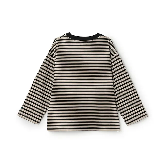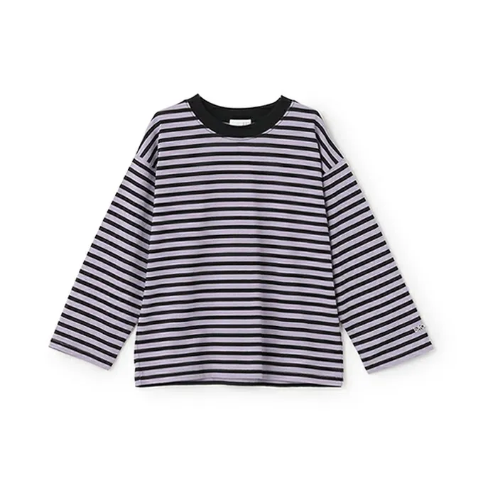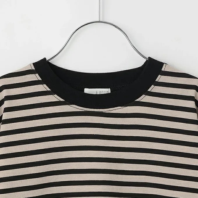 日本 b-ROOM - 100%棉 寬鬆落肩定番條紋長袖上衣-灰藍