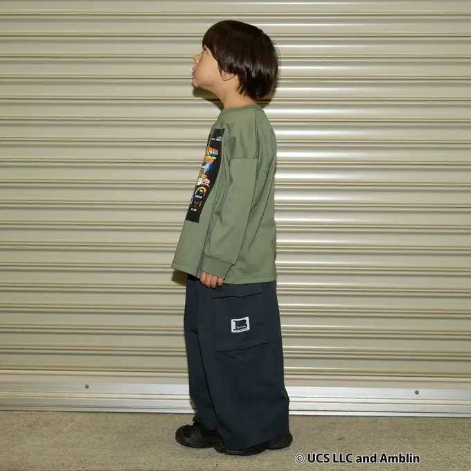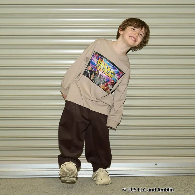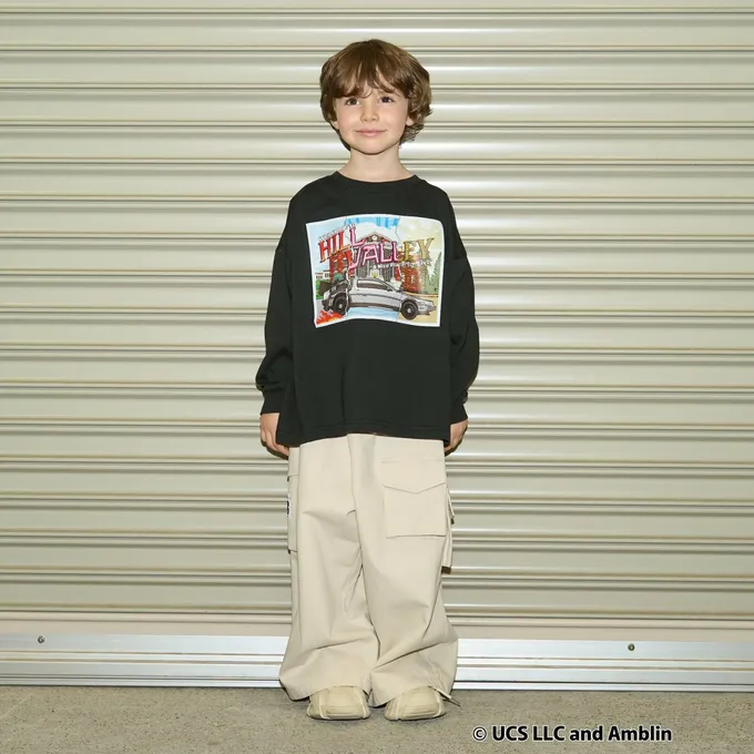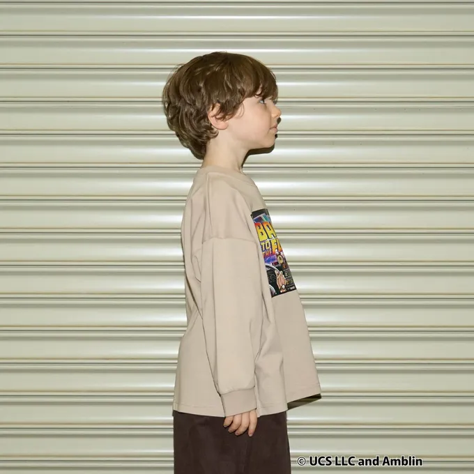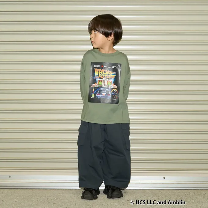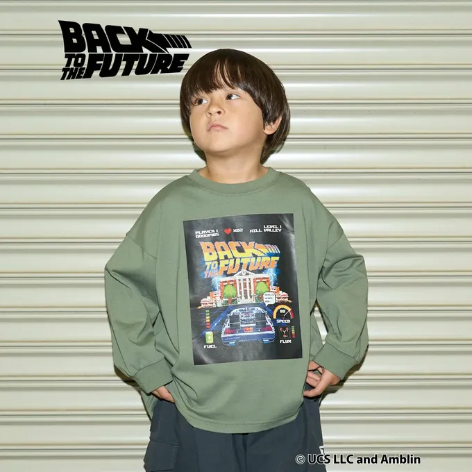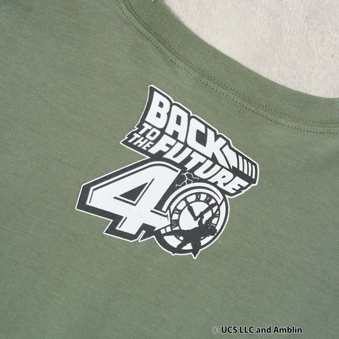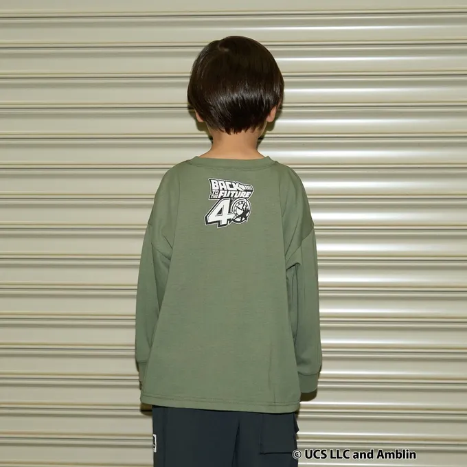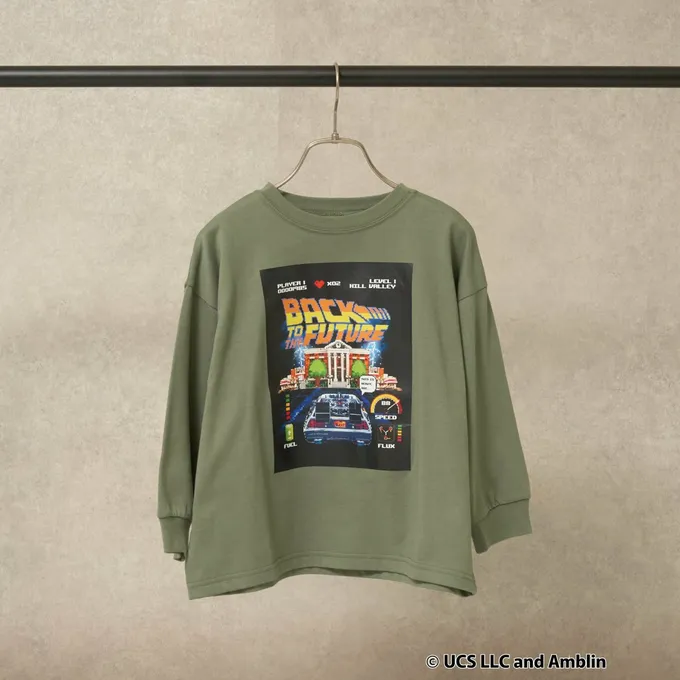 日本 b-ROOM - 聯名款 印花長袖上衣-回到未來電影場景-軍綠