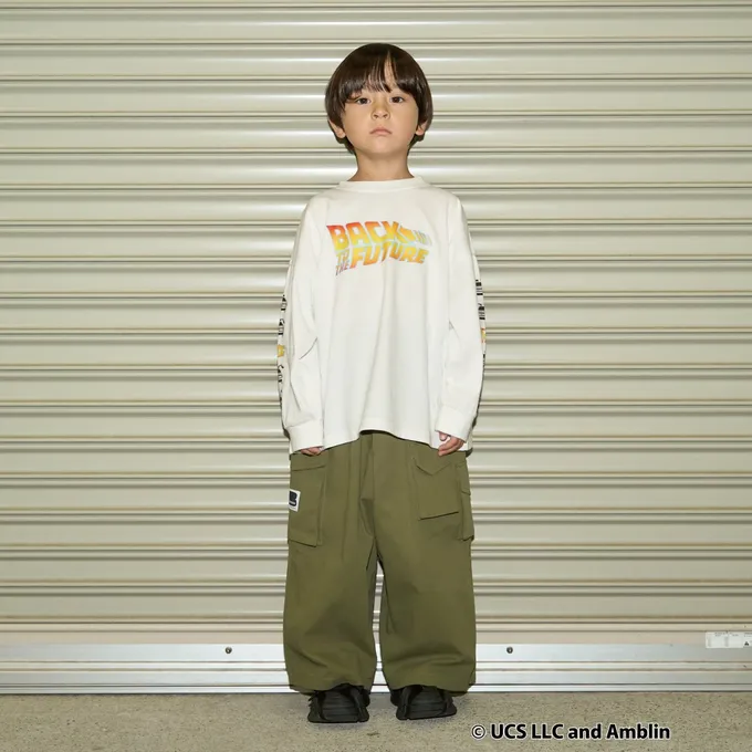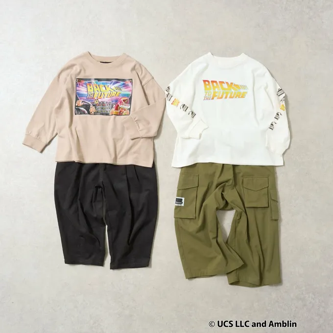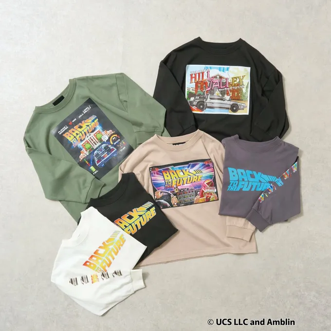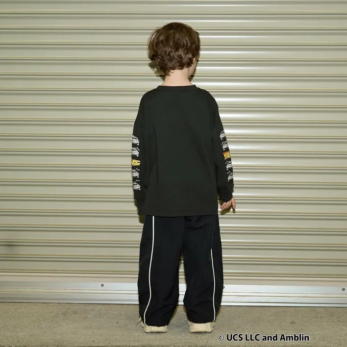 日本 b-ROOM - 聯名款 印花長袖上衣-回到未來袖logo-炭灰