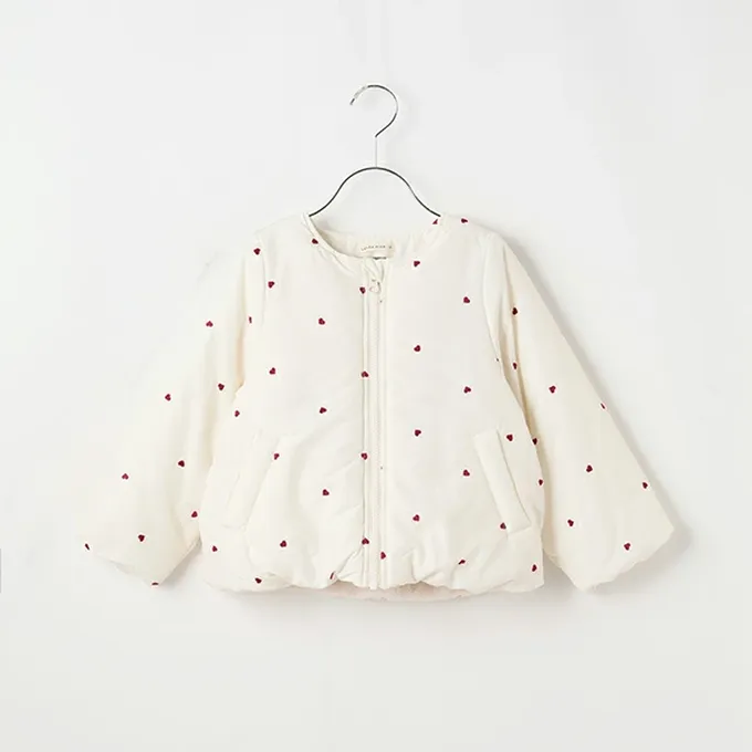 日本 Lycee mine - 甜心刺繡無領鋪棉保暖外套-蝴蝶結-象牙