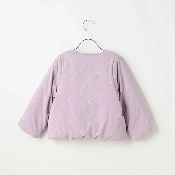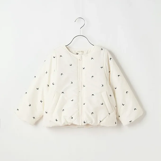 日本 Lycee mine - 甜心刺繡無領鋪棉保暖外套-蝴蝶結-淺灰棕