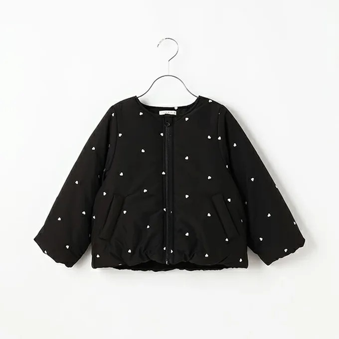 • 品名:甜心刺繡無領鋪棉保暖外套