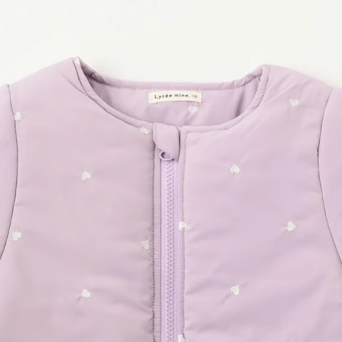 日本 Lycee mine - 甜心刺繡無領鋪棉保暖外套-愛心-薰衣草