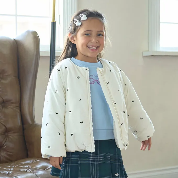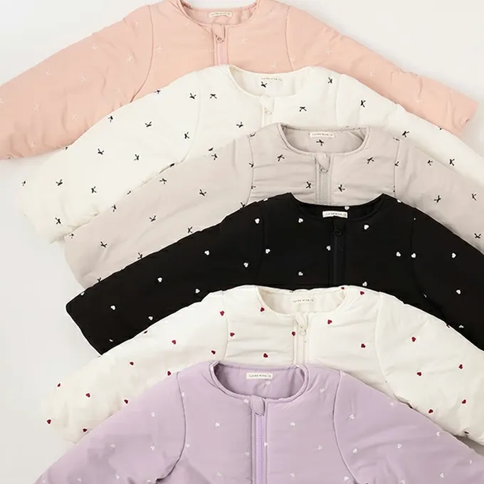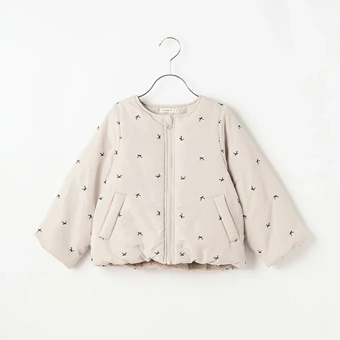• 品名:甜心刺繡無領鋪棉保暖外套
