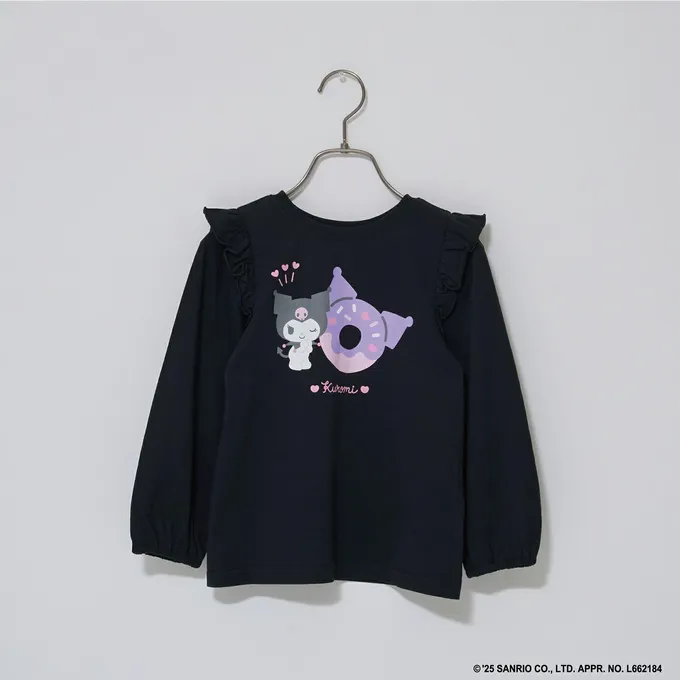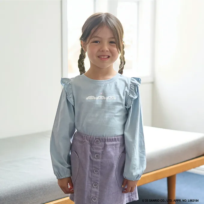 日本 Lycee mine - 聯名款 正反穿肩荷葉印花長袖上衣-卡通人物大耳狗-水藍
