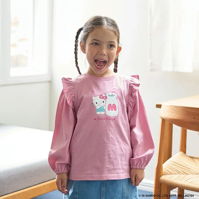 • 品名:聯名款 正反穿肩荷葉印花長袖上衣