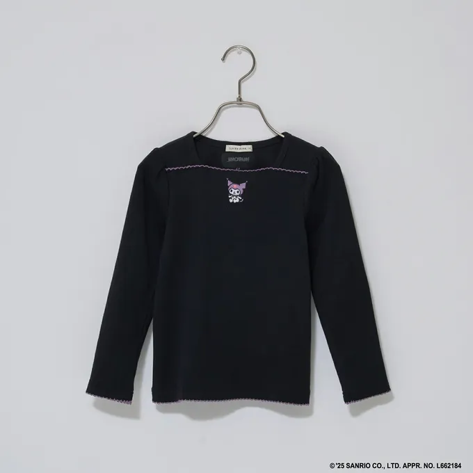 日本 Lycee mine - 聯名款 小巧刺繡氣質方領長袖上衣-卡通人物酷洛米-黑