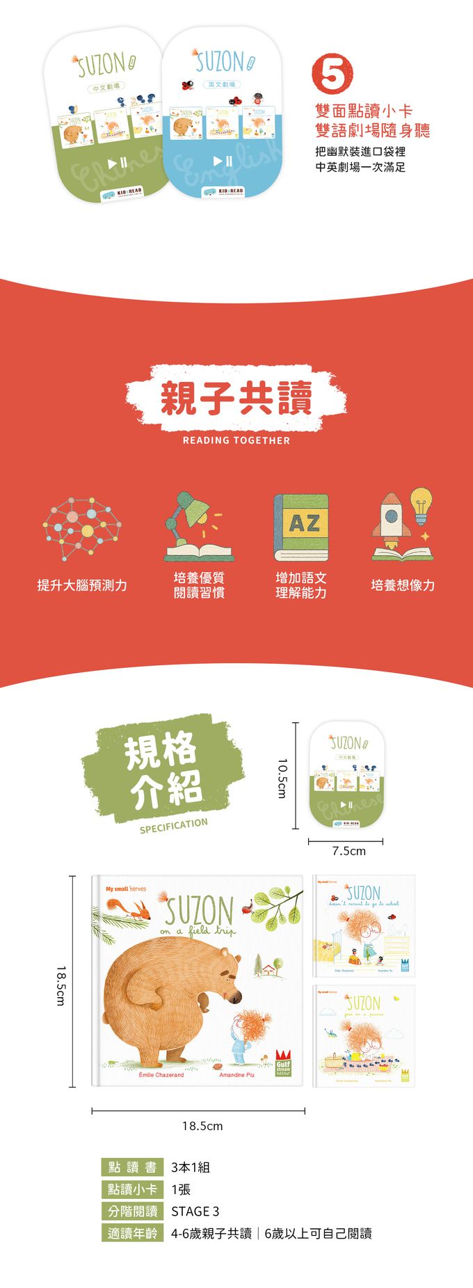 中文劇場用最貼近孩子的語氣,把笑點、表情、情緒詮釋到位;英文劇場則像一場戲劇表演,專業配音有抑揚頓挫、角色分明,讓孩子能當成英文聽力練習,一邊聽一邊跟讀。![]()