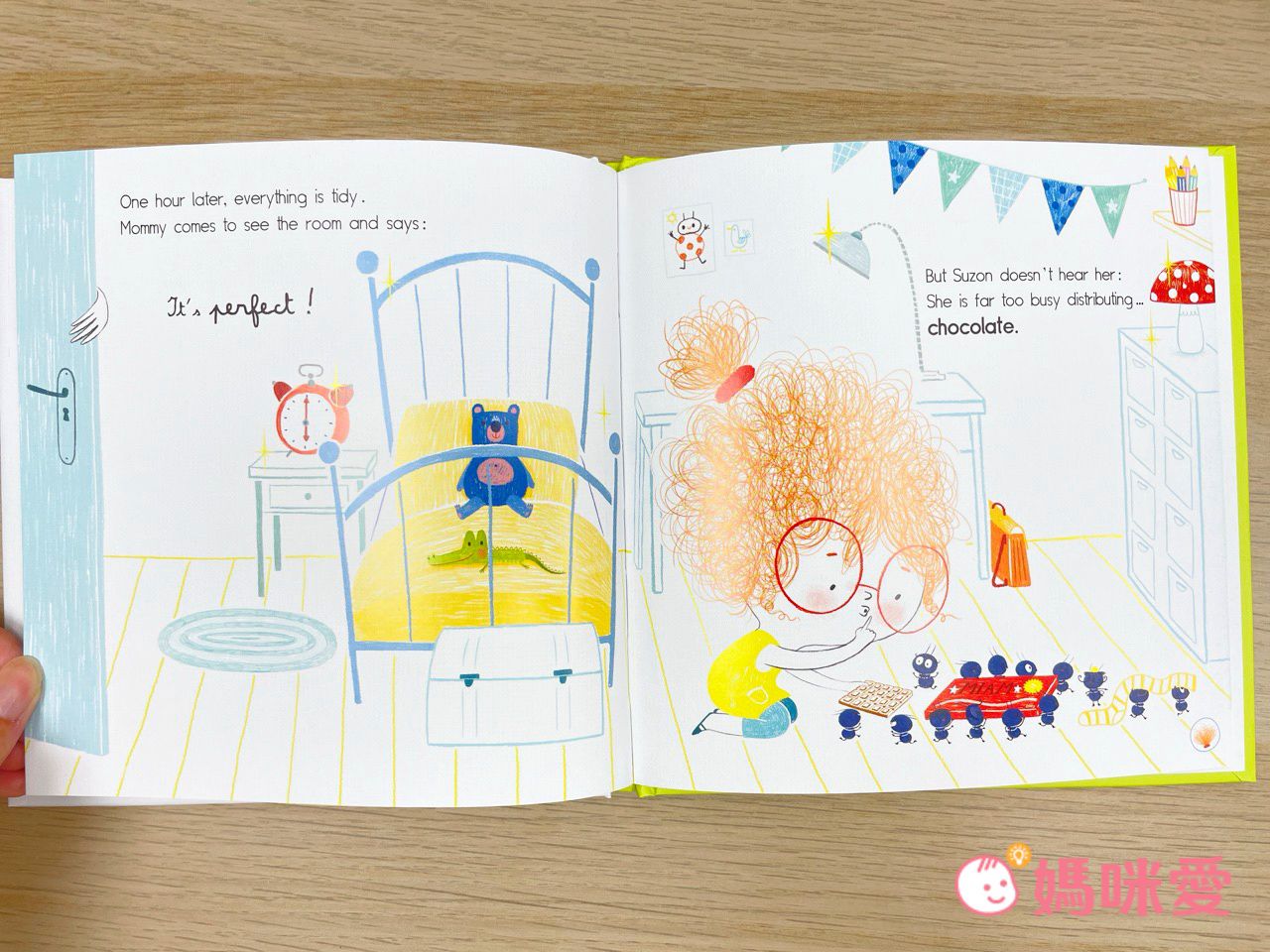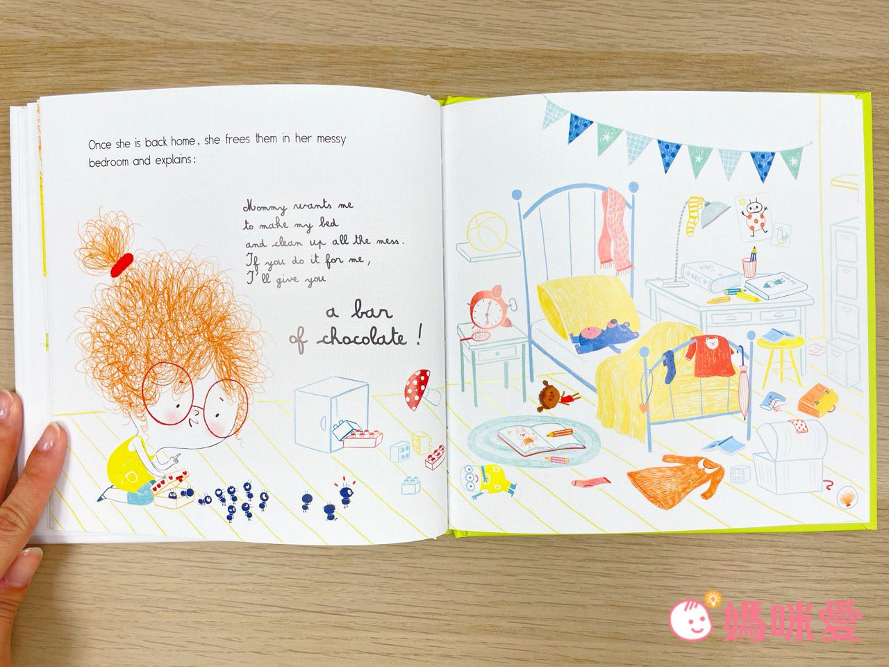 Suzon說如果螞蟻們能幫忙整理房間,她就請牠們吃巧克力。於是螞蟻們就開始上工了~![]()