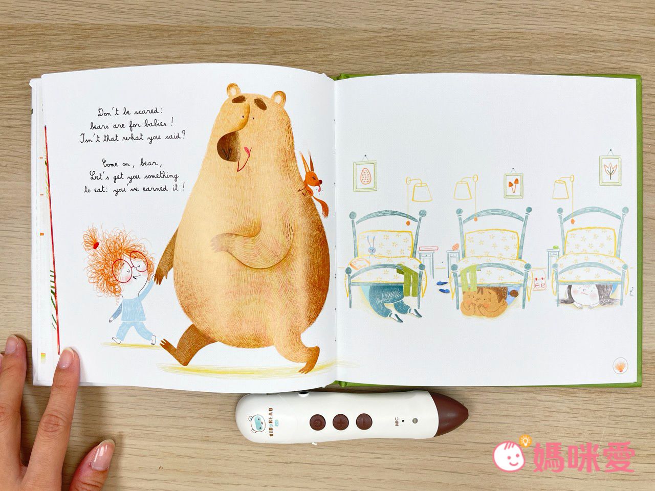 她計畫一場反擊行動:帶著大熊一起進入房間,同學們一見到大熊嚇得驚聲尖叫,紛紛鑽到床底下躲起來。![]()