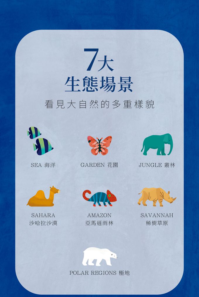 再來就是有7大生態場景:帶孩子走進海洋、亞馬遜雨林、沙哈拉沙漠、草原、極地⋯⋯等自然秘境。