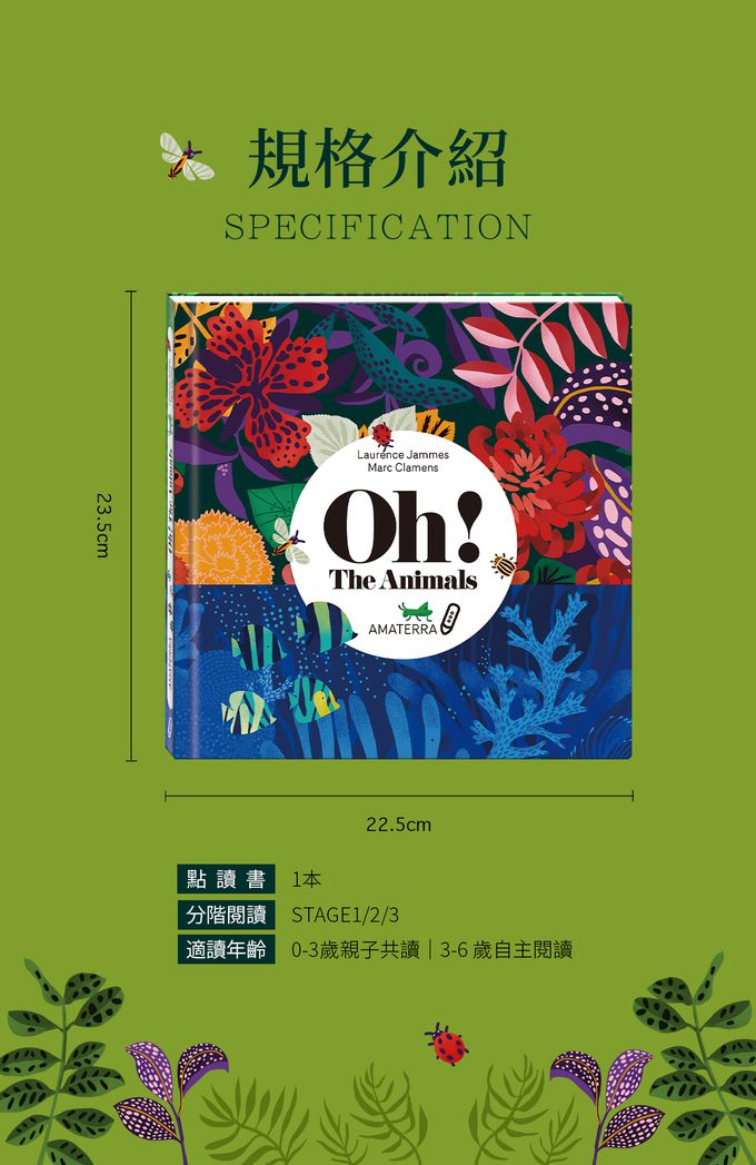 《Oh! The Animals》讓孩子在愉快氛圍中愛上閱讀,對大自然充滿好奇。透過觀察一起討論著棲地、氣候、動物特徵等等。