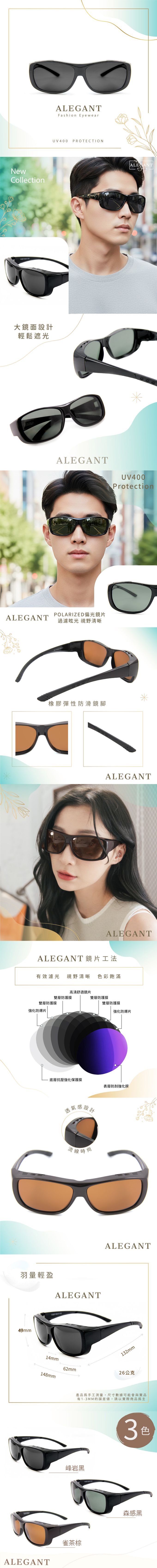 ALEGANT - 輕奢時尚透氣方框全罩式防滑彈力鏡腳寶麗來偏光墨鏡│外掛式UV400太陽眼鏡