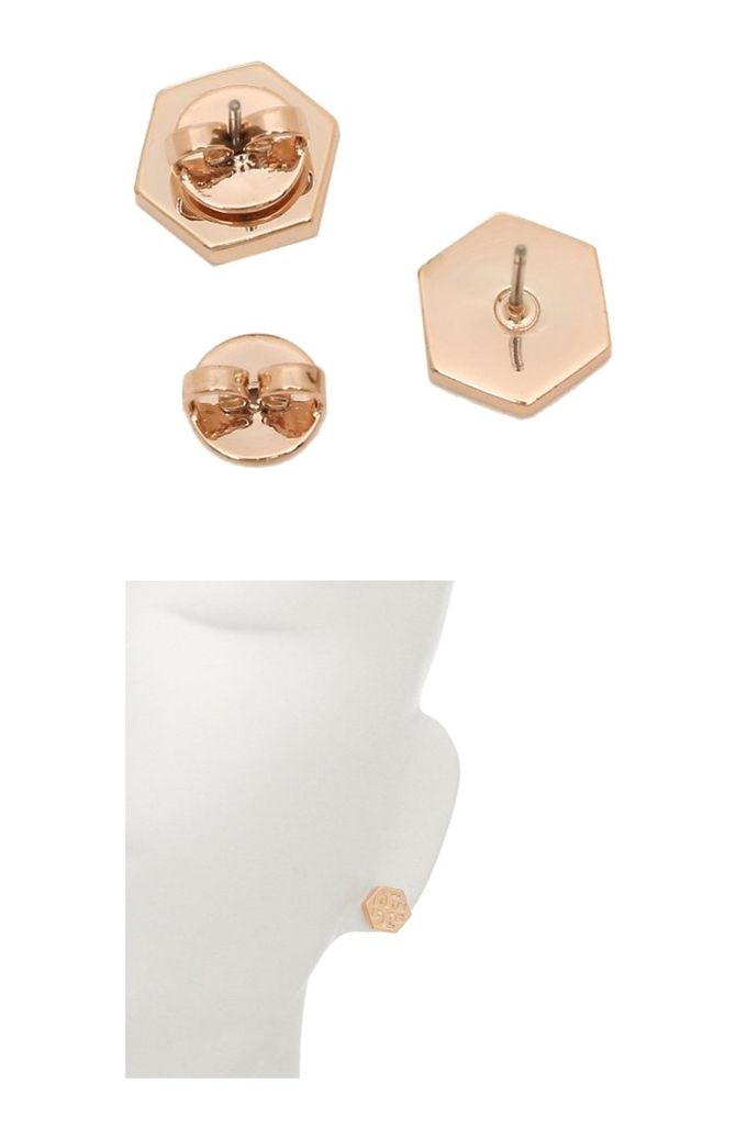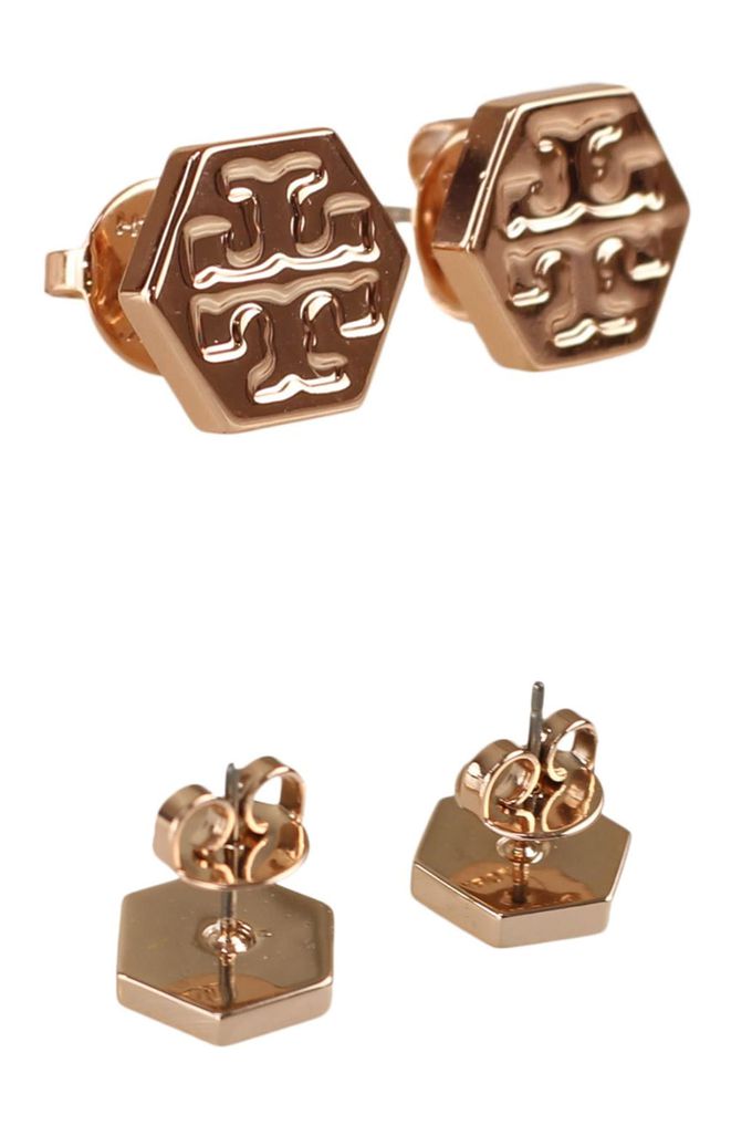 六角形壓印雙T-LOGO造型耳環 (玫瑰金)