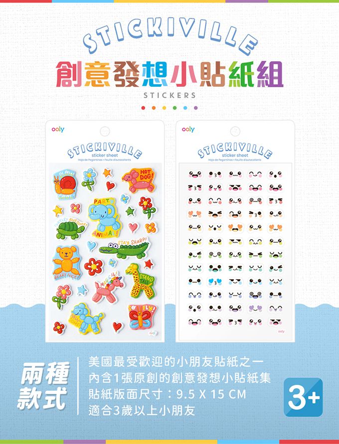 。美國最受歡迎的小朋友貼紙之一。加寬版:每款內含1張原創創意發想小貼紙集。貼紙版面尺寸:9.5 X 15 CM。充滿活力張力與生命力的設計。專為小朋友所設計,別具心裁的文青小物。適合3歲以上小朋友