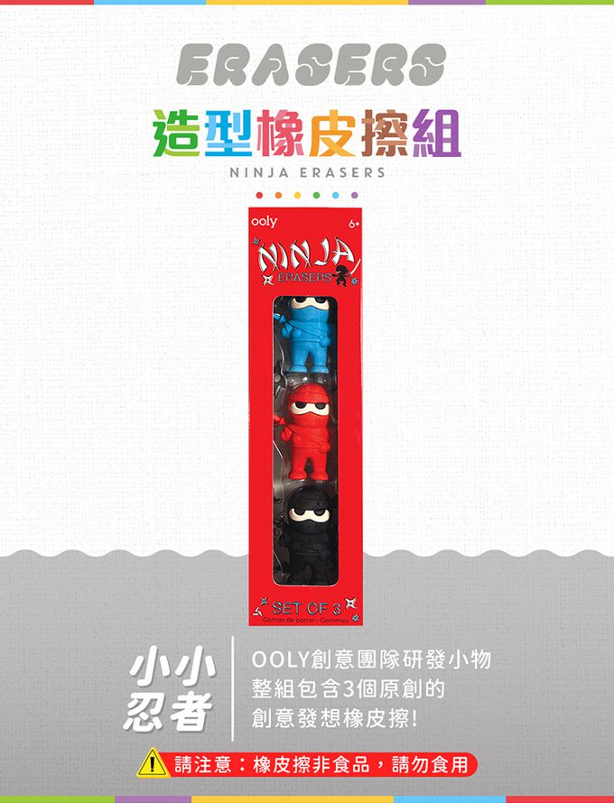 美國 OOLY - 【橡皮擦系列】造型橡皮擦組 (小小忍者)