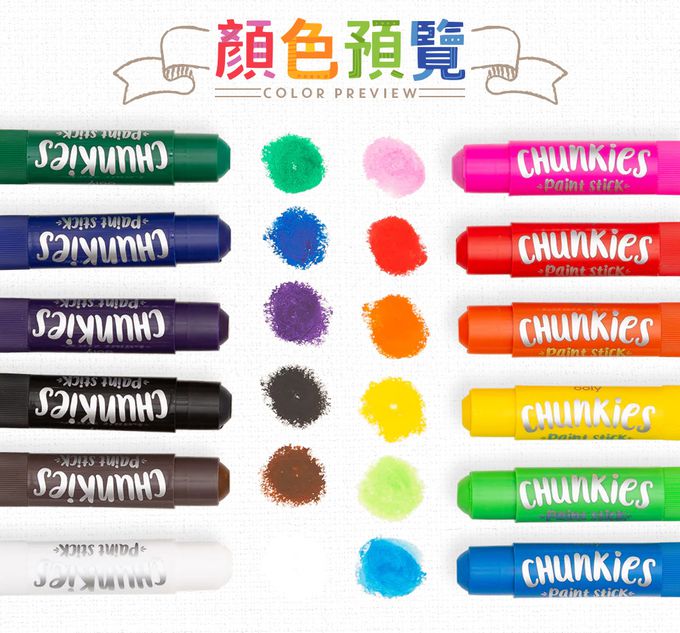 。幼兒創作的新寵 - 胖蠟筆。胖蠟筆的設計, 就是要讓幼兒對運筆的掌握度更高, 也畫得更有自信! 加上特殊的口紅旋轉般設計, 輕鬆一轉, 胖蠟筆尖就會出現, 既乾淨又超好攜帶!。易乾特性, 不會像傳統蠟筆般有沾黏的問題。一組12入, 含12種不同的動感活力顏色。適合3歲以上小朋友