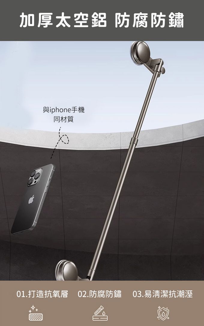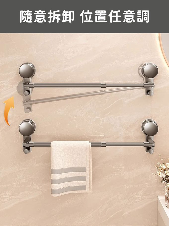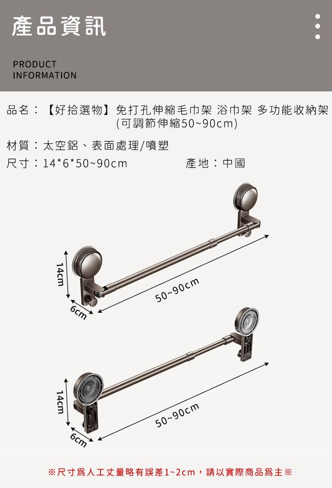 品名:免打孔伸縮毛巾架 浴巾架 多功能收納架-2入組