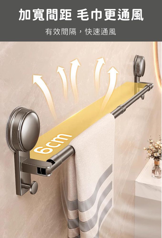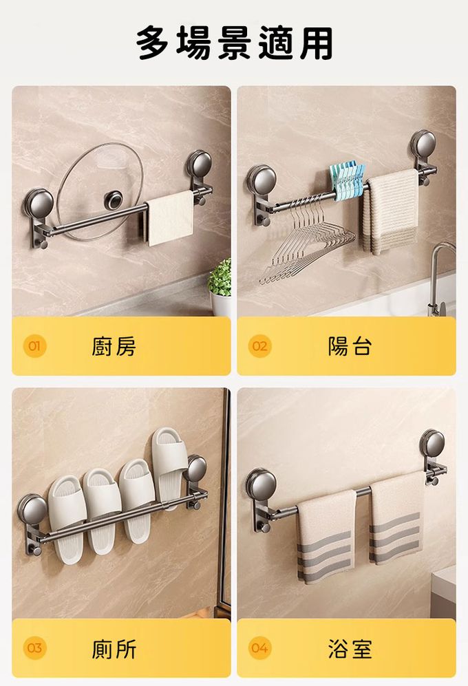 免打孔伸縮毛巾架 浴巾架 多功能收納架-2入組