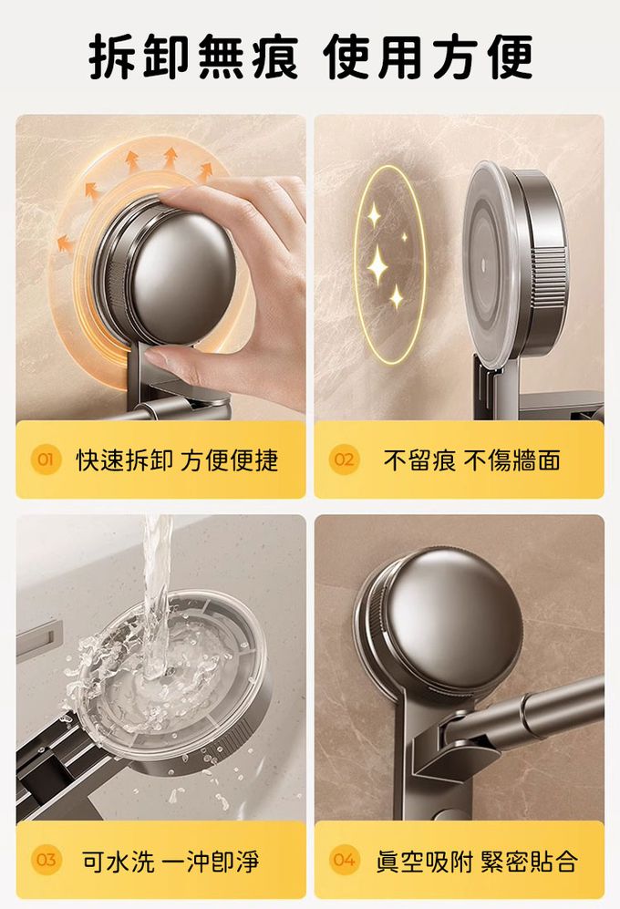 注意事項:1.商品到貨享鑑賞期之權益,鑑賞期並非試用期,辦理退貨商品必須是全新狀態且紙箱及商品配件包裝須完整。商品一經使用或組裝後,恕無法辦理退換貨。 2.商品為人工丈量略有1~3公分內誤差,請以實品為主。 3.網頁商品會因面板螢幕解析度不同,造成圖片顏色呈現略有不同,請以實品顏色為準 4.商品圖為情境示意圖,本商品內容不包含擺飾物品。 5.安裝前請保持牆面乾淨且無塵,撕開吸盤保護膜後, 貼牆面按壓緊實並排除空氣,順時針旋轉扭緊固定 6.請避開磁磚連接處縫隙安裝,以免影響黏貼效果 7.安裝後乾燥靜置24小時後使用,承重效果較佳