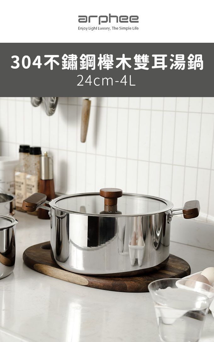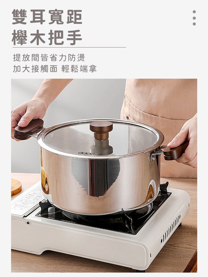品名:304不鏽鋼櫸木雙耳湯鍋24cm-4L