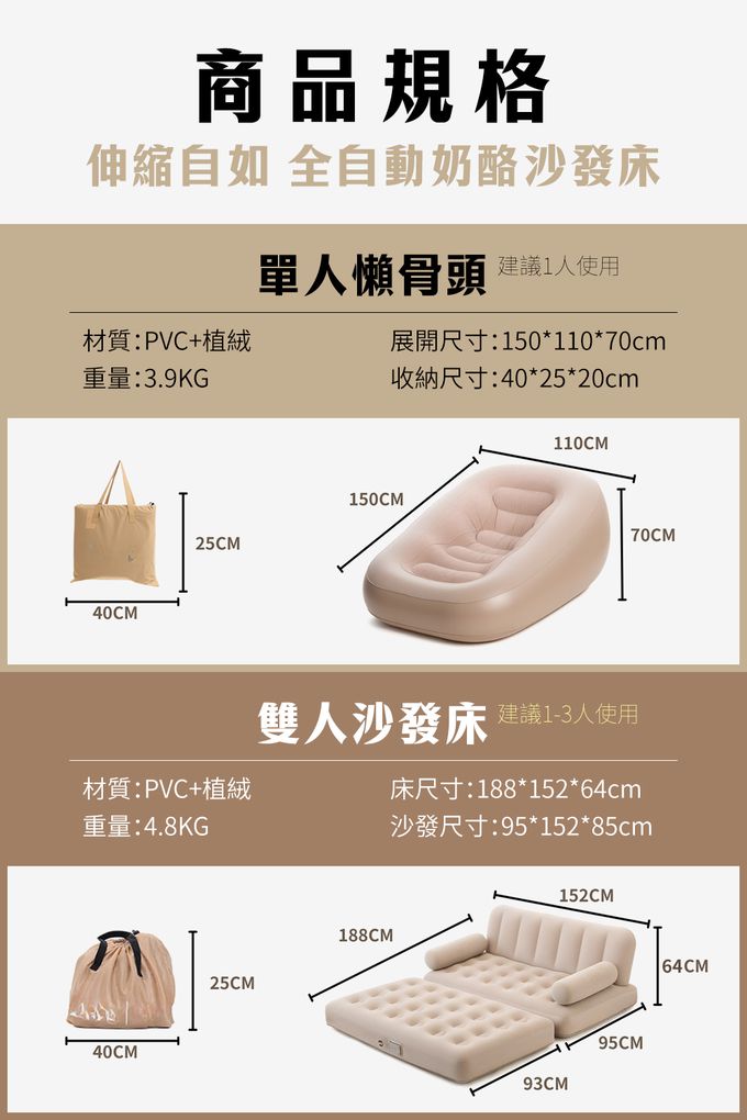 品名:伸縮自如全自動奶酪沙發床