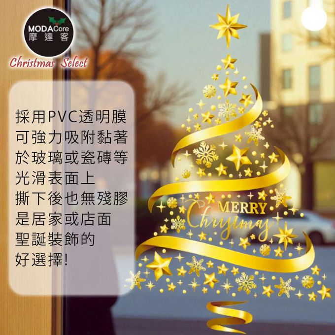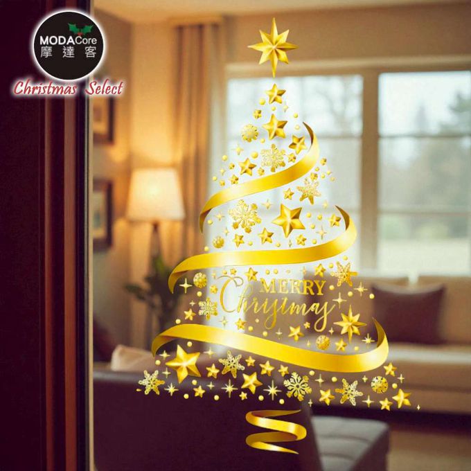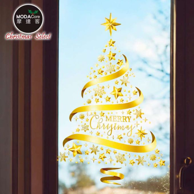 耶誕-金色5號緞帶聖誕樹-無痕窗貼玻璃靜電貼窗貼