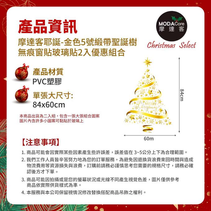品名:耶誕-金色5號緞帶聖誕樹-無痕窗貼玻璃靜電貼窗貼