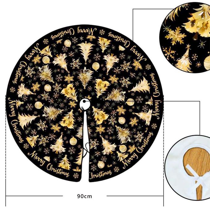 金色耶誕樹013號短毛絨印花聖誕樹裙90cm_聖誕樹裝飾底墊
