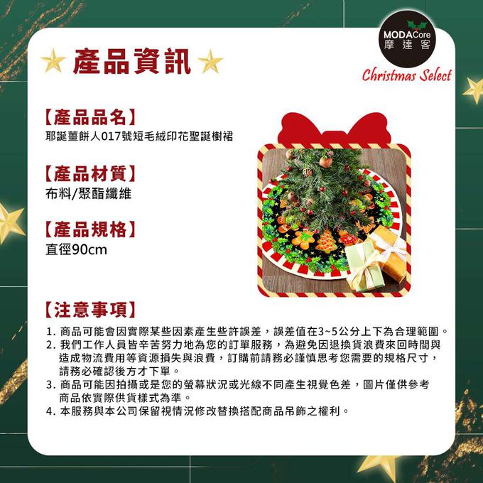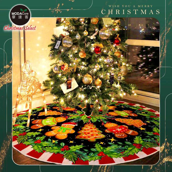 品名:耶誕薑餅人017號短毛絨印花聖誕樹裙90cm_聖誕樹裝飾底墊