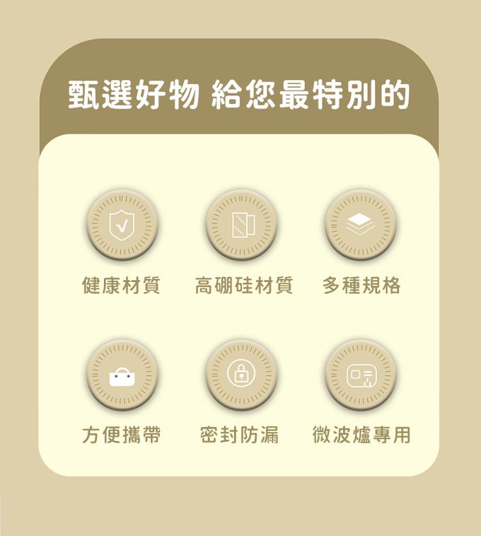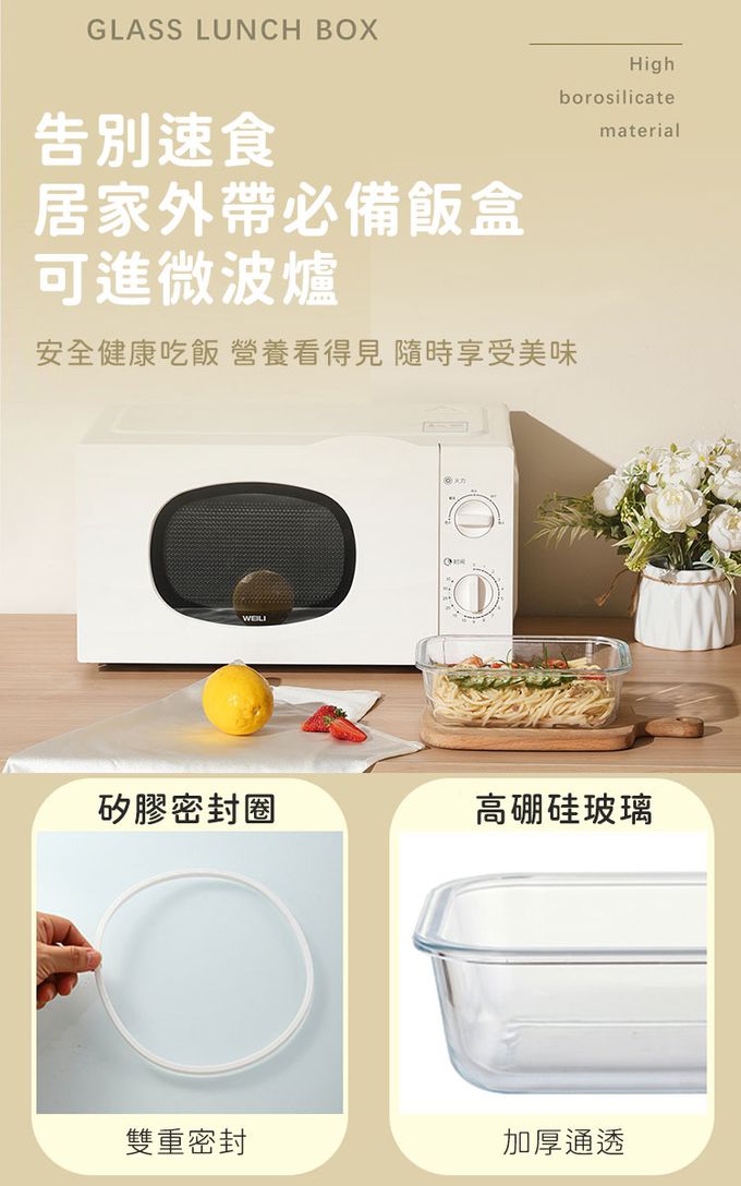 • 材質:高硼硅玻璃、食品級PP盒蓋、密封矽膠圈