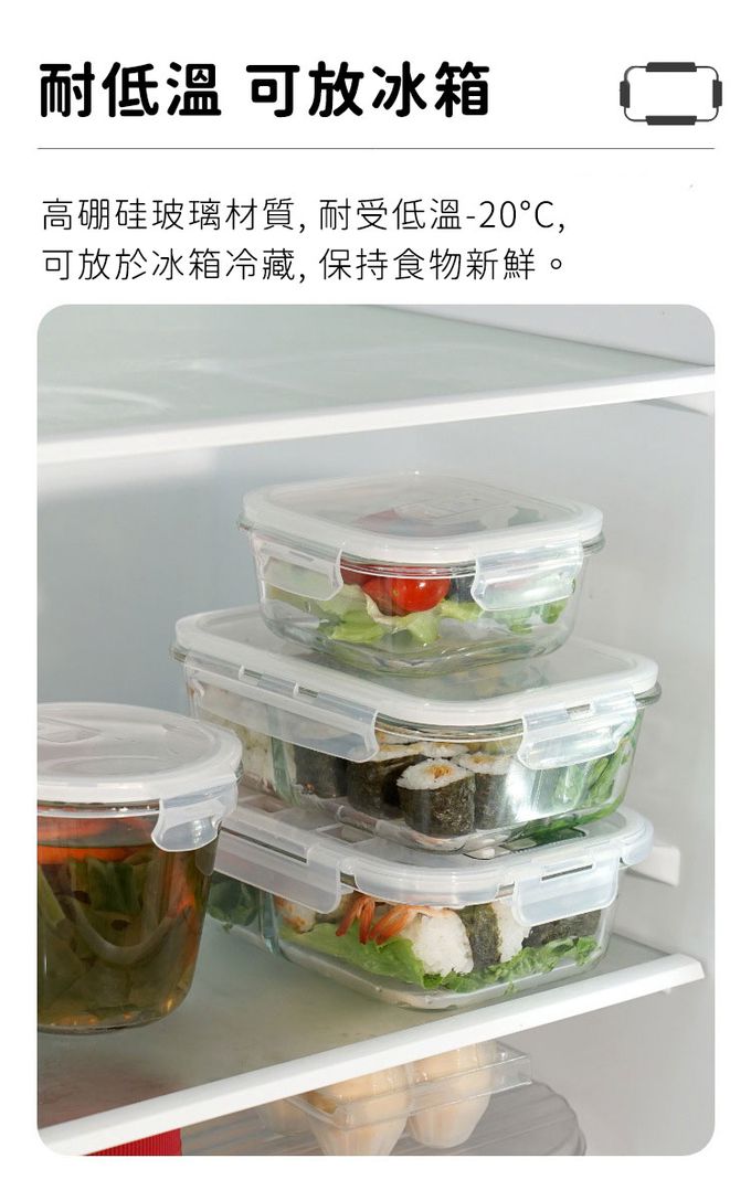 • 材質:高硼硅玻璃、食品級PP盒蓋、密封矽膠圈