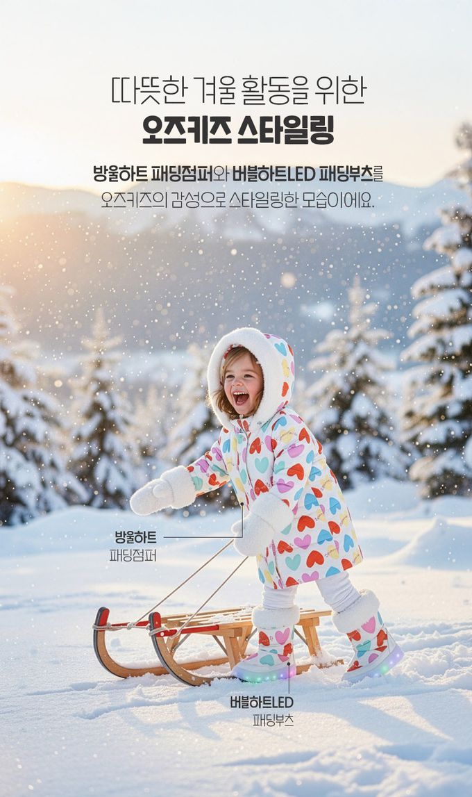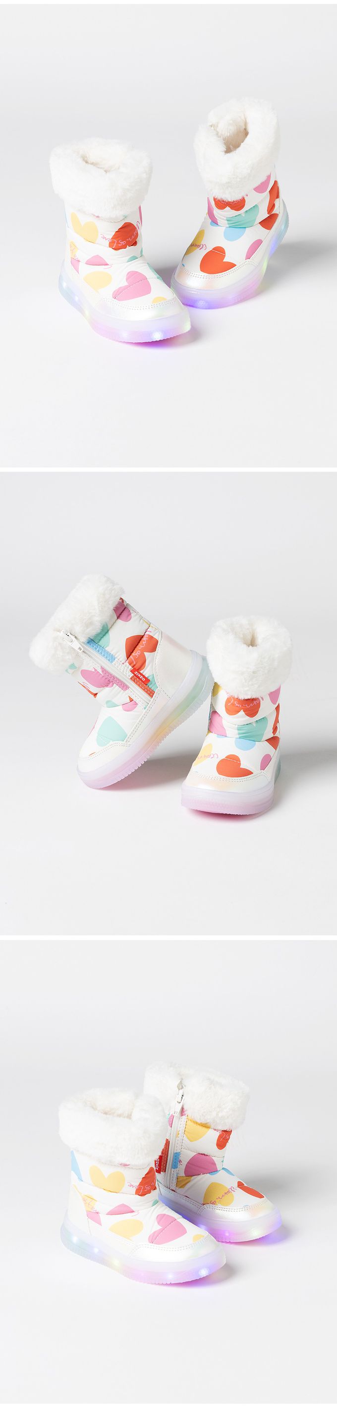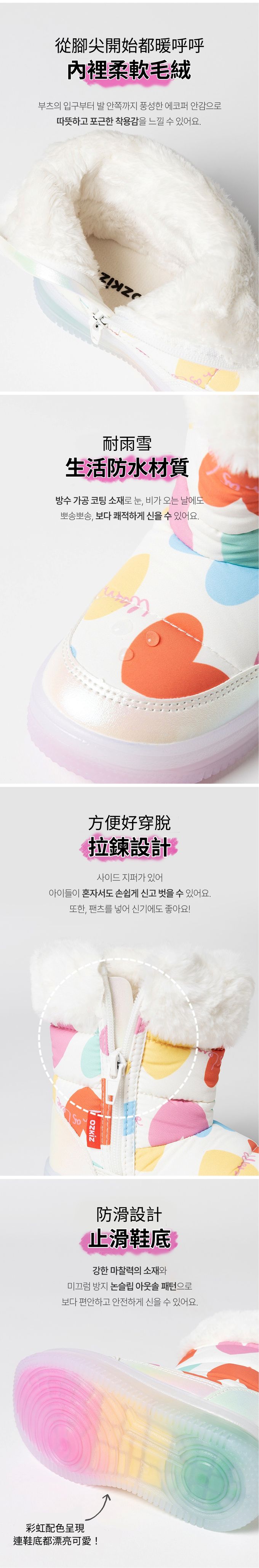 韓國 OZKIZ - (LED)生活防水側拉鍊內刷毛雪靴-彩色愛心