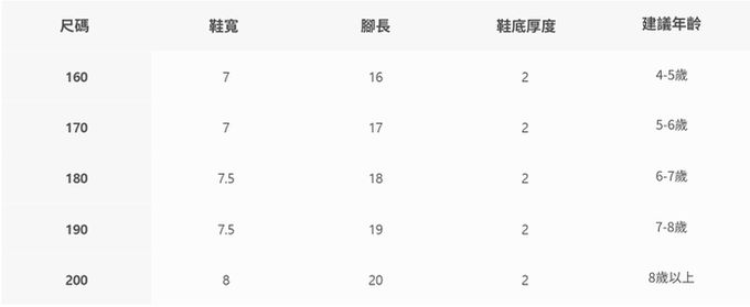 2. 每個尺寸的建議年齡、建議身高僅供參考,每位孩子發育狀況各有不同,建議參考寶貝現有的鞋子尺寸做對照。
