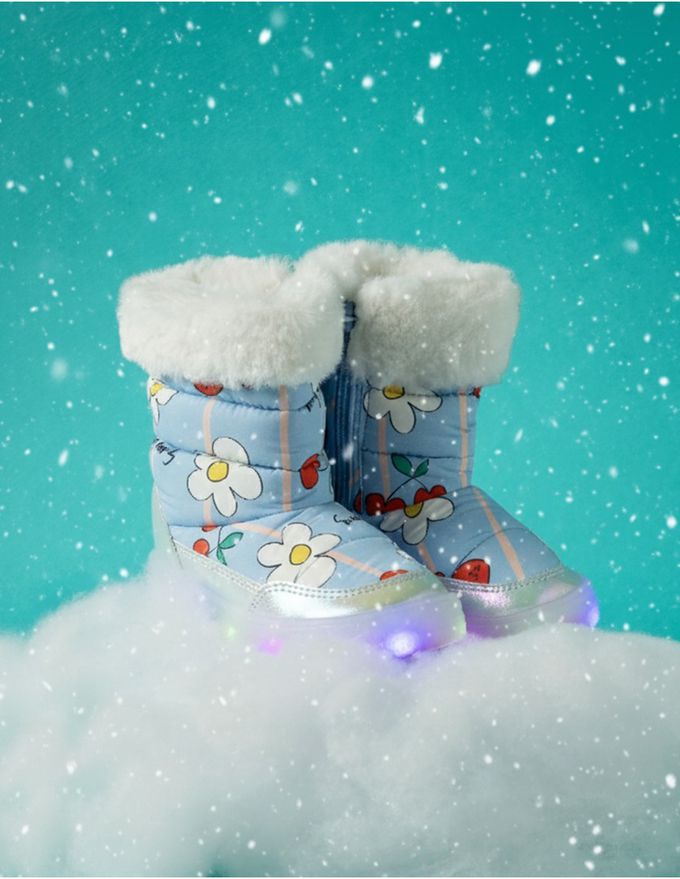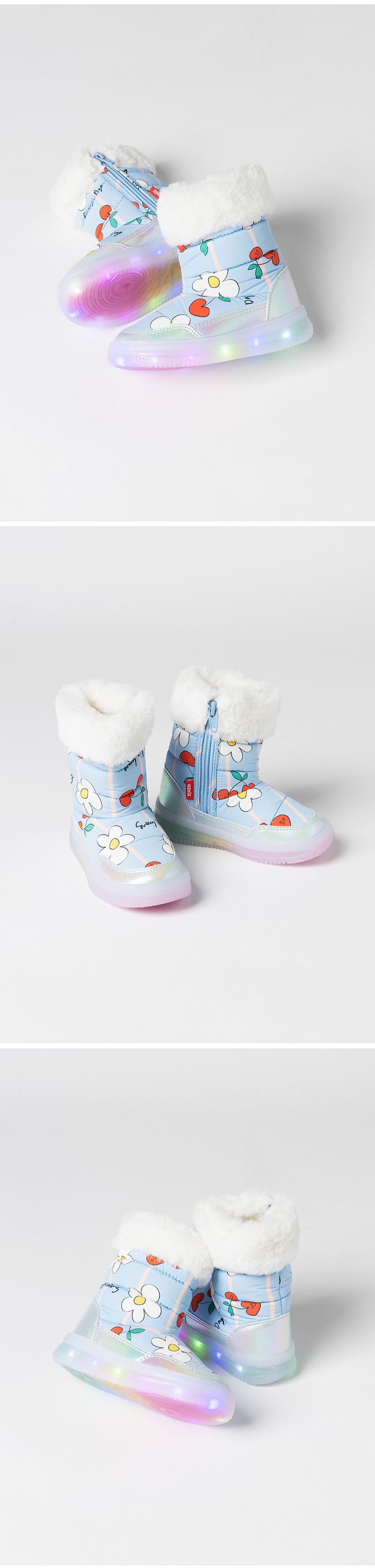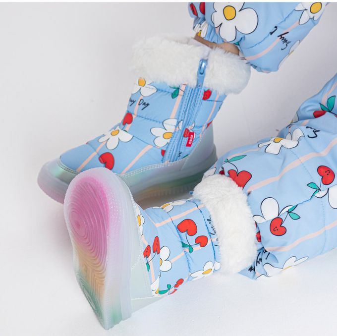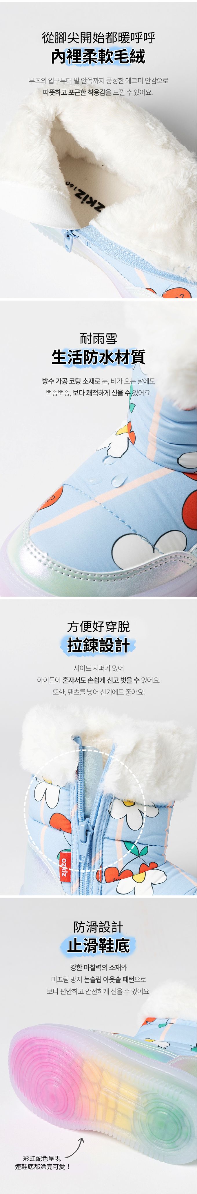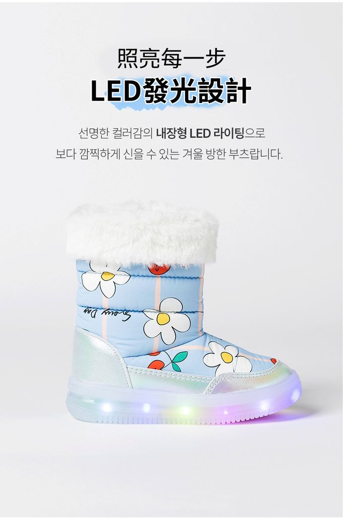 韓國 OZKIZ - (LED)生活防水側拉鍊內刷毛雪靴-櫻桃花-天藍