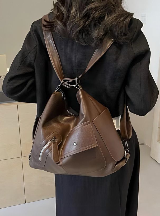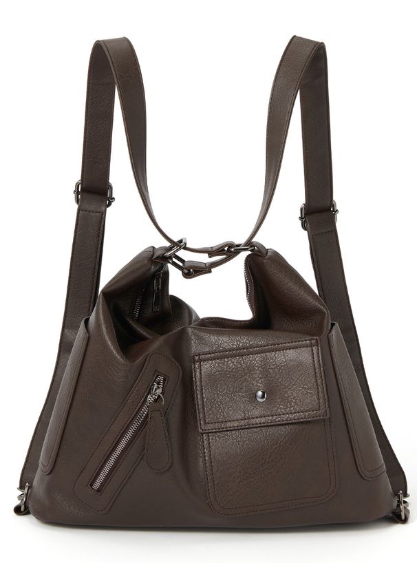 日本 GRL - 摩登復古皮革感2way側背/後背包-黑 (F)