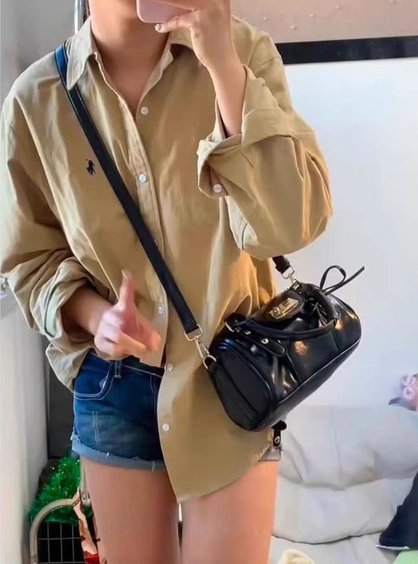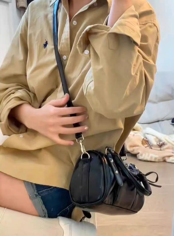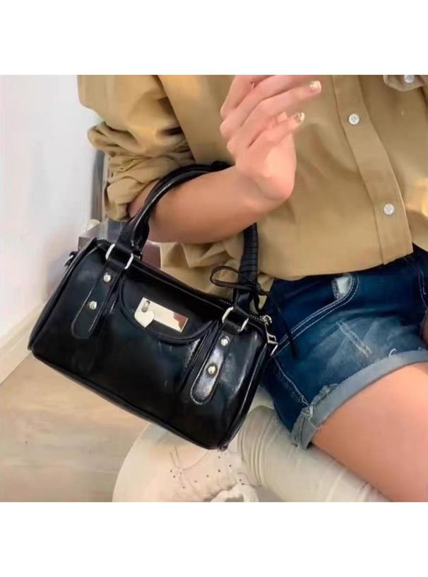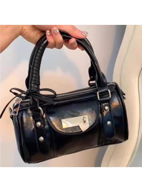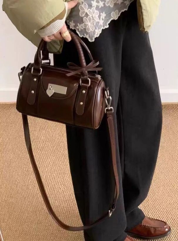 • 帶有光澤感的人造皮革,搭配圓潤波士頓包
