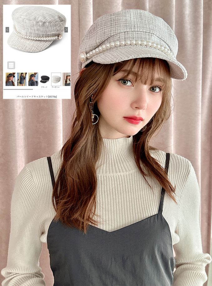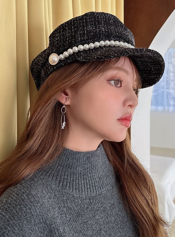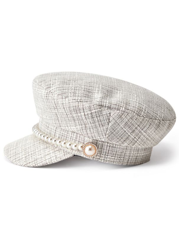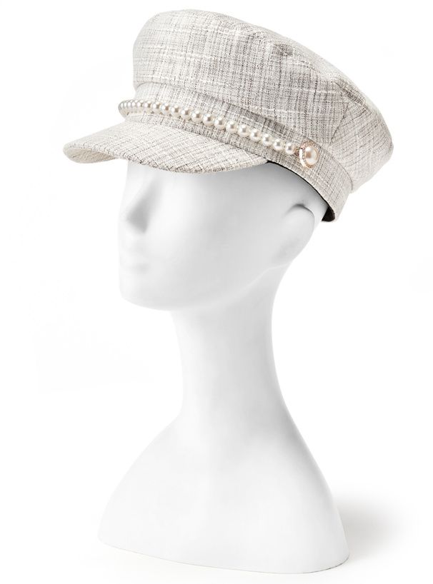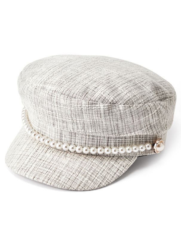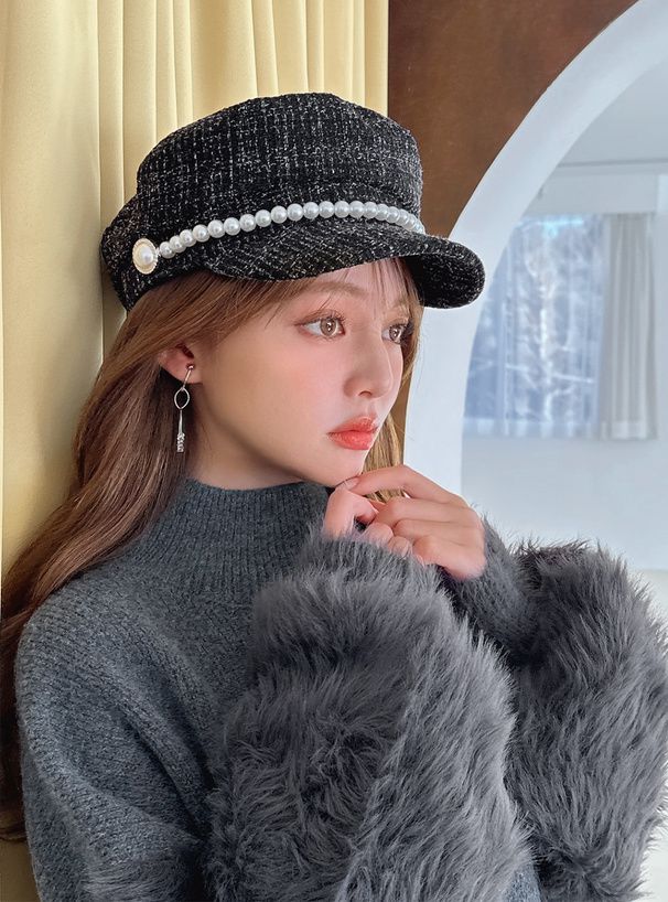 日本 GRL - 奢華珍珠串飾花呢報童帽-象牙米 (F)
