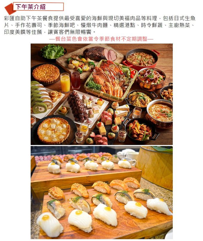 1. 本券提供彩匯自助餐廳週五至週日適用下午茶餐1客或早餐1客,優惠期間自2025/11/7至2026/09/30,逾期依禮券金額抵用餐飲消費,請事先訂位02-7722-3395。