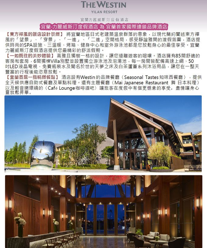 7.相關未盡事宜以官網及現場公告為主,宜蘭力麗威斯汀度假酒店對優惠方案有最終解釋權。