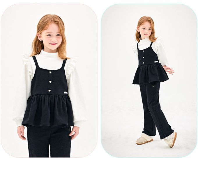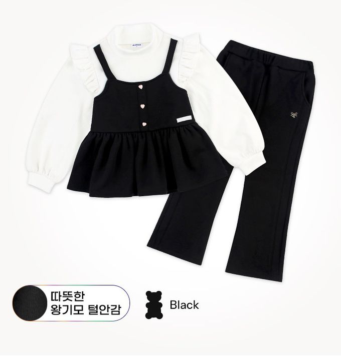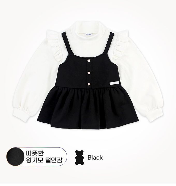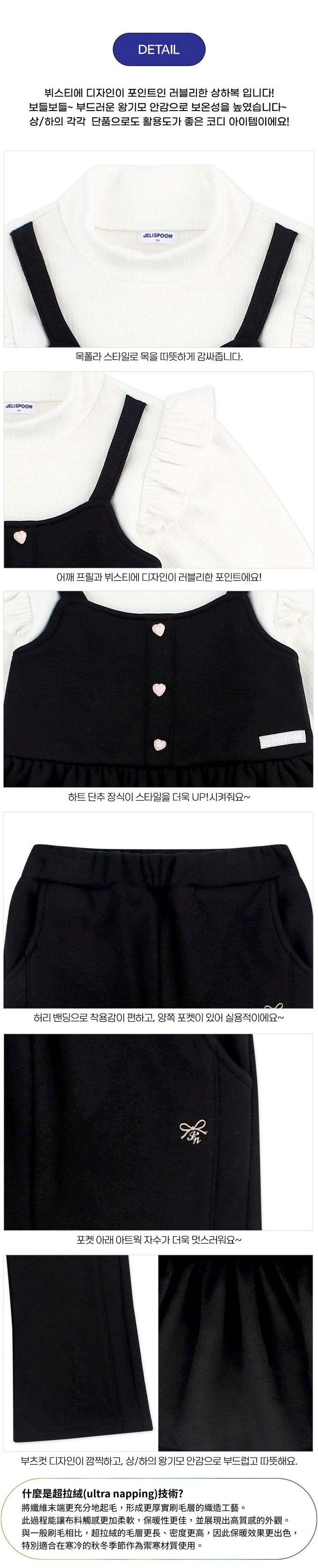 韓國 Jelispoon - 知性風格假兩件內刷毛長袖套裝-白X黑