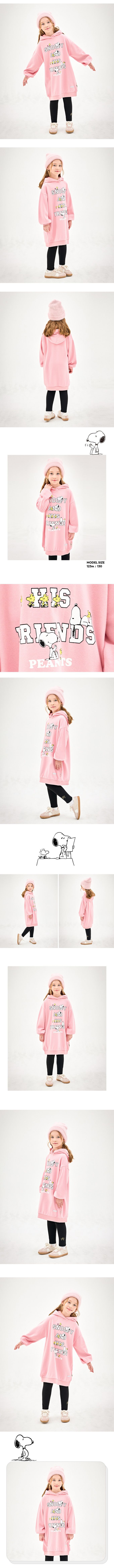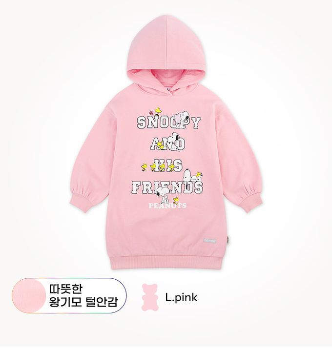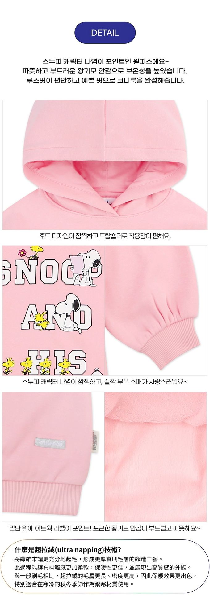 韓國 Jelispoon - (聯名款)卡通人物史努比內刷毛連帽長袖洋裝-粉