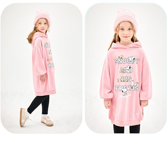 • 品名:(聯名款)卡通人物史努比內刷毛連帽長袖洋裝