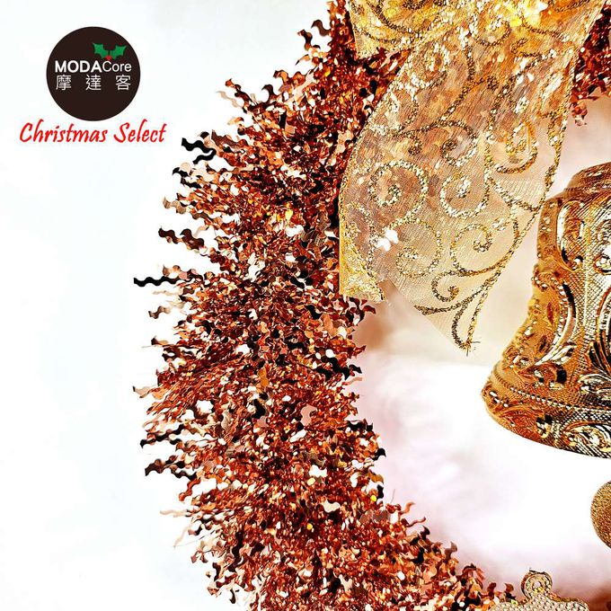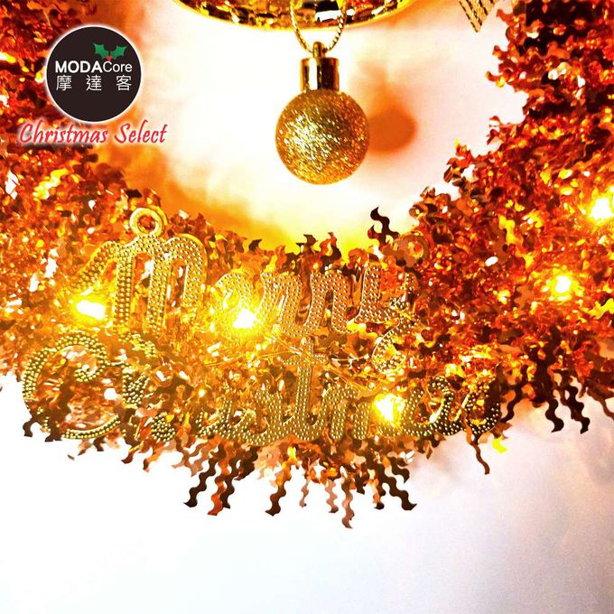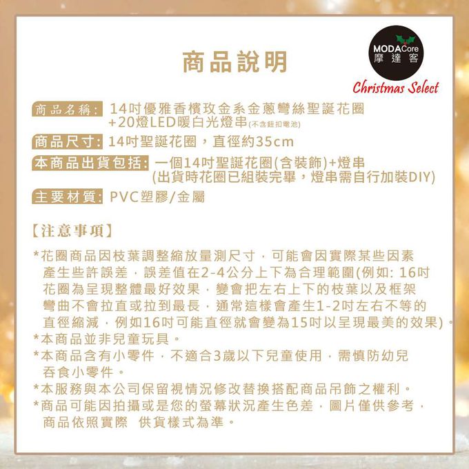 14吋優雅香檳玫金系金蔥彎絲聖誕花圈+20燈LED暖白光燈串_本島免運費