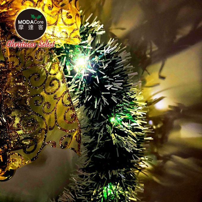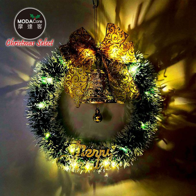 品名:14吋風尚雅墨綠刷白系金蔥彎絲聖誕花圈+20燈LED暖白光燈串_本島免運費