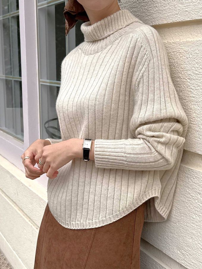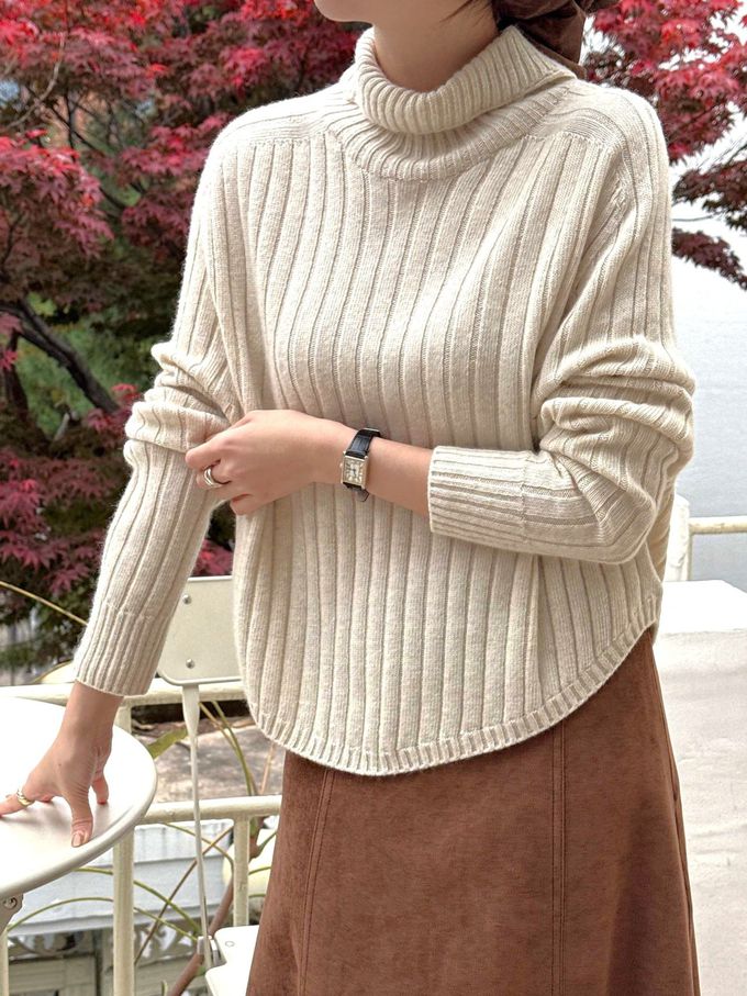 • 品名:柔軟美麗諾羊毛開衩翻領坑條長袖針織上衣
