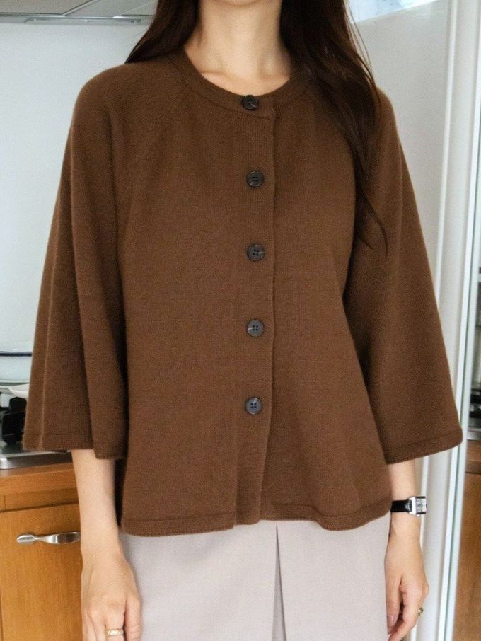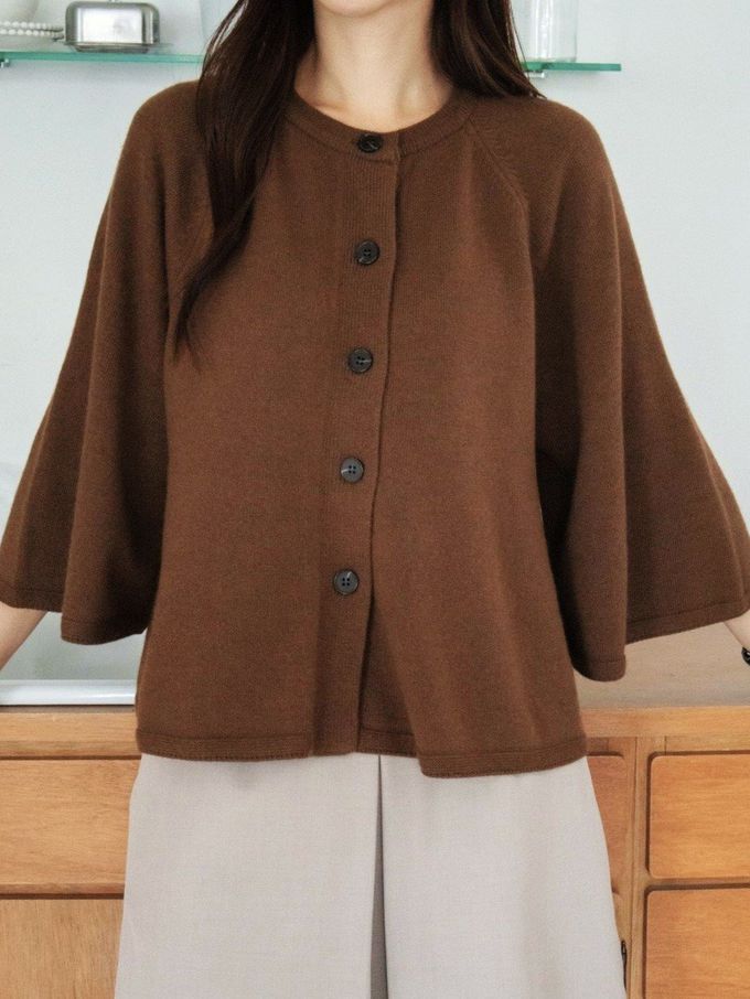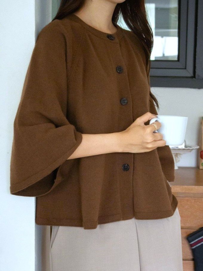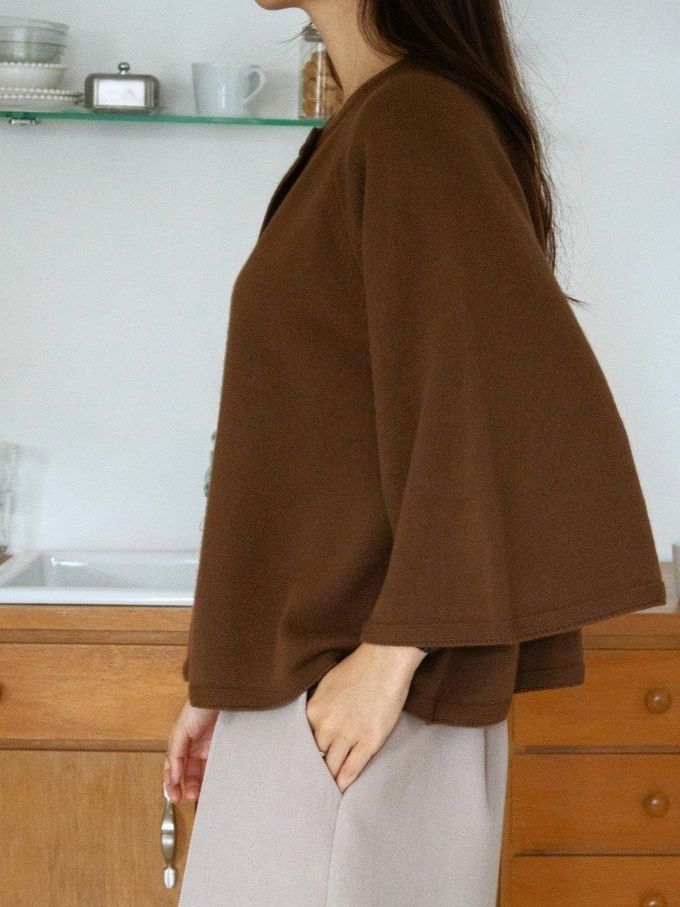 韓國女裝連線 - 柔軟美麗諾羊毛針織飄逸袖外套-咖啡 (FREE)