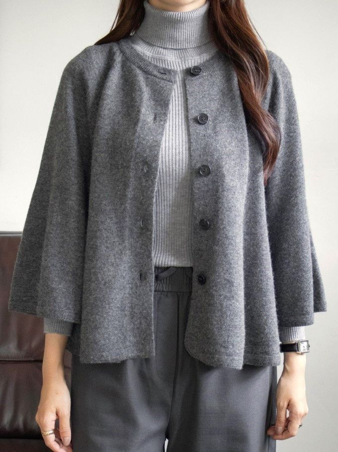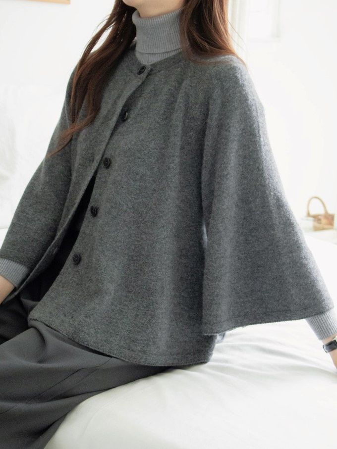 • 品名:柔軟美麗諾羊毛針織飄逸袖外套