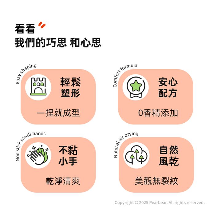 柔軟好塑形,不黏手不掉屑,使用過程更安心